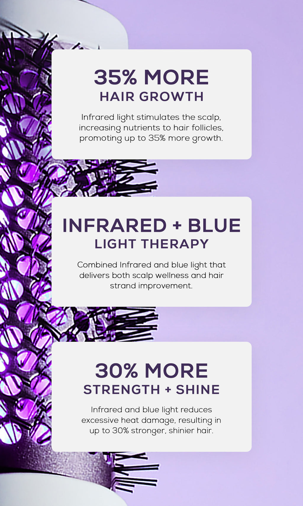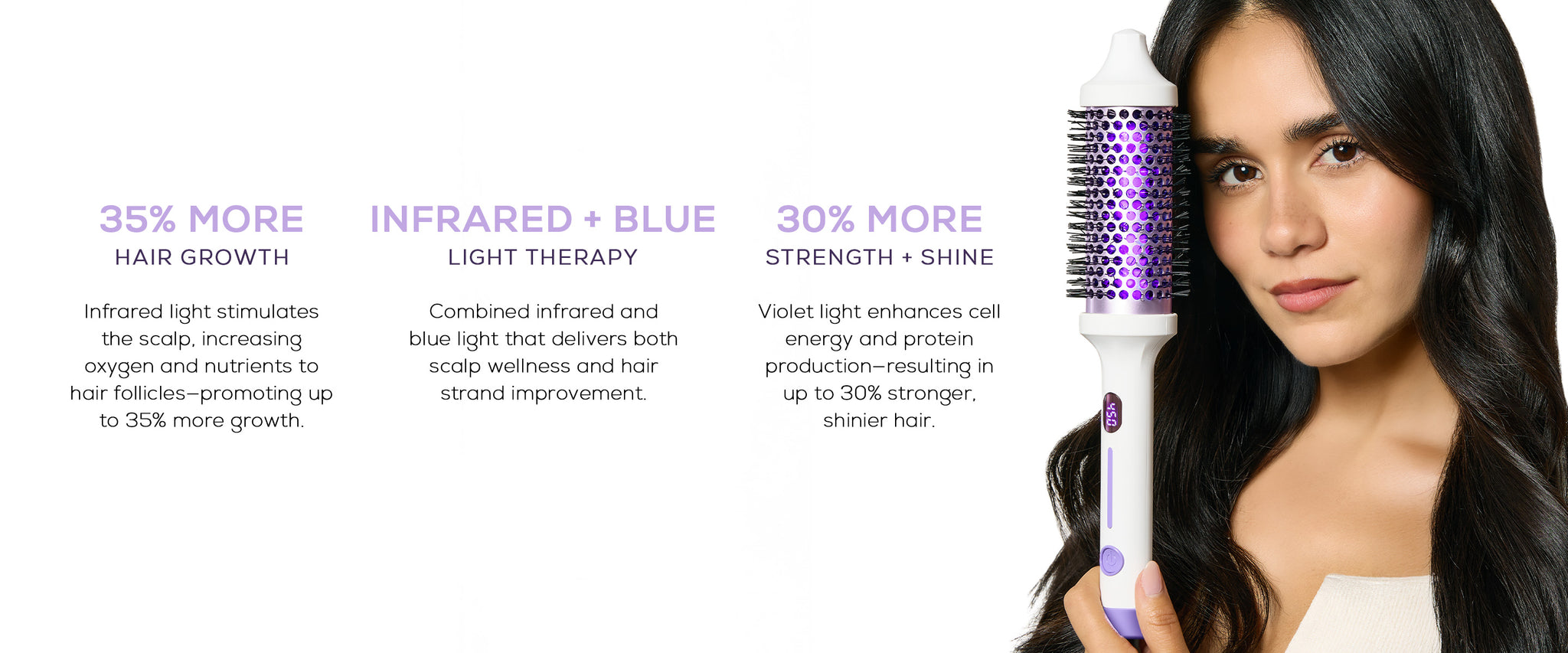 While no tool eliminates all heat damage, Violet Light helps counteract common side effects like dryness, brittleness, and breakage by promoting hydration retention, scalp health, and hair fiber strength during every pass.