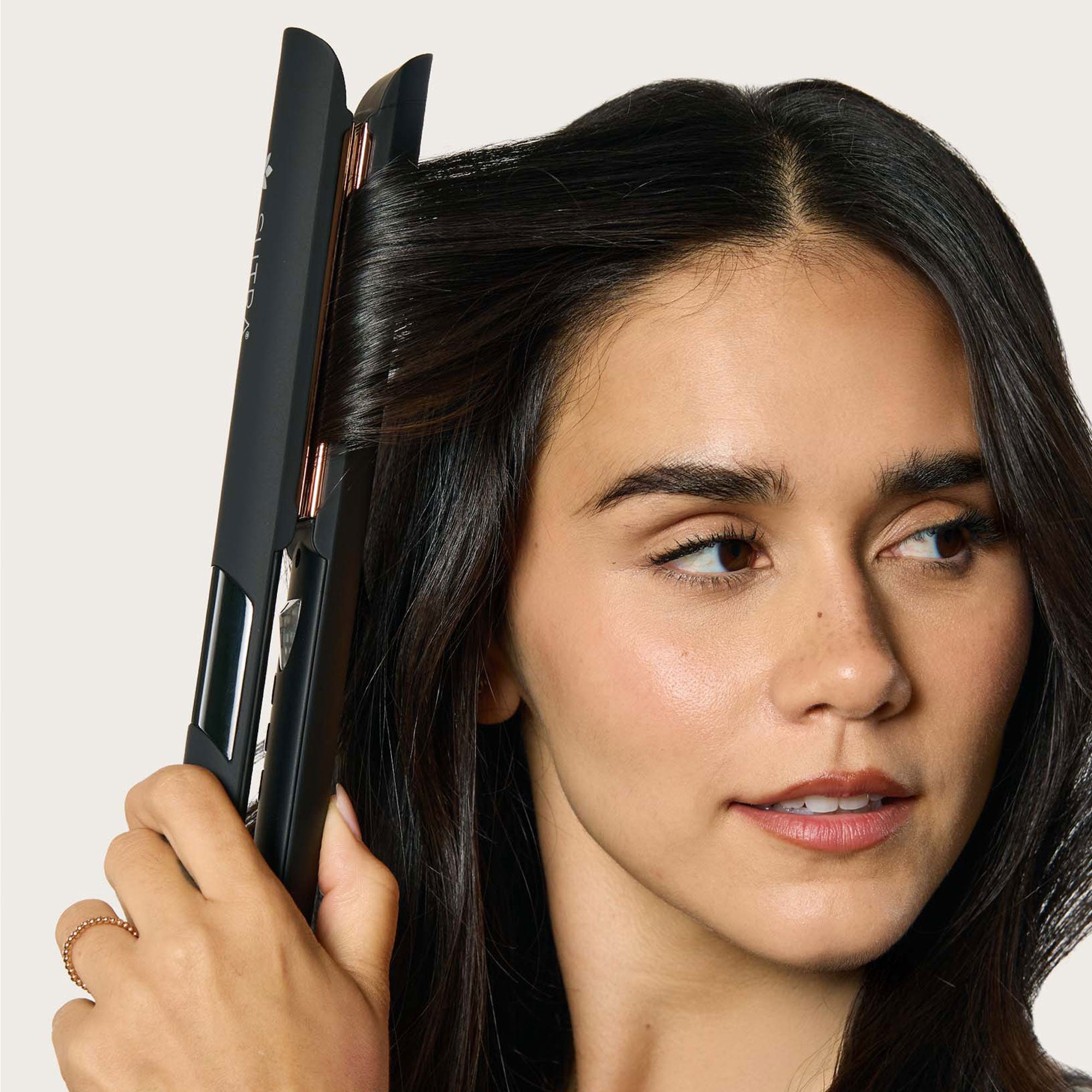 IR2 Infrared Flat Iron: Rose gold titanium floating plates glide smoothly to create glossy, frizz-free styles. Ionic technology seals the cuticle for sleek, healthy-looking hair with every pass.