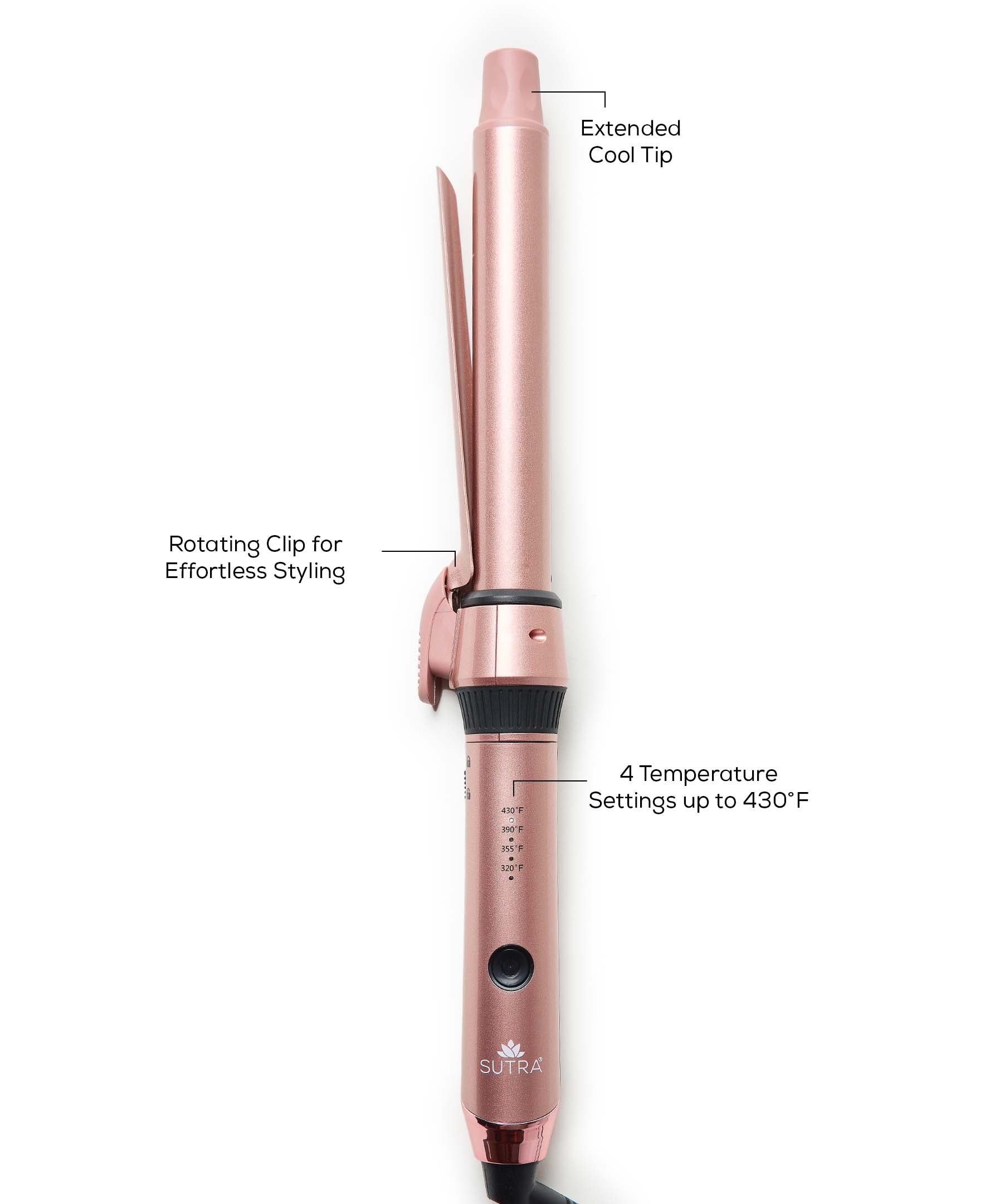 Introducing Sutra's 1" Curling Iron featuring their tourmaline-infused ceramic coated barrel and ionic technology. It is designed to deliver effortless control with a smooth glide for perfect bouncy curls.